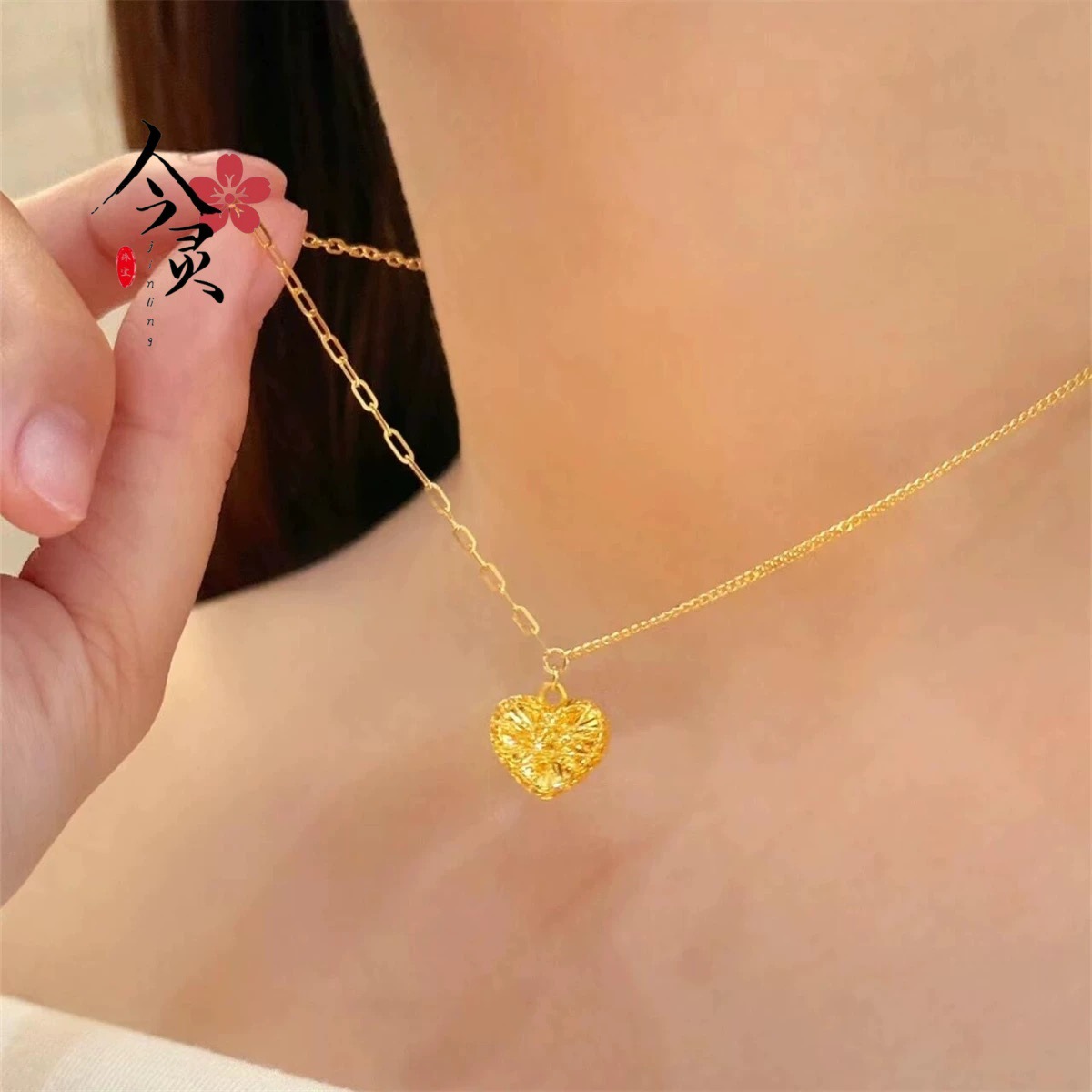 suit Women's Gold Color Silk Hollow Heart-shaped Light Luxury High-end Necklace