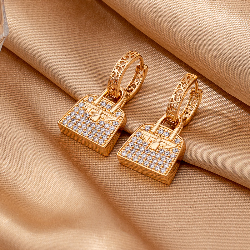 New Style Zirconia Bag Pendant Necklace Earrings Light Luxury Rose Gold Pendant Set Gift for Best Friend Gift for Girlfriend