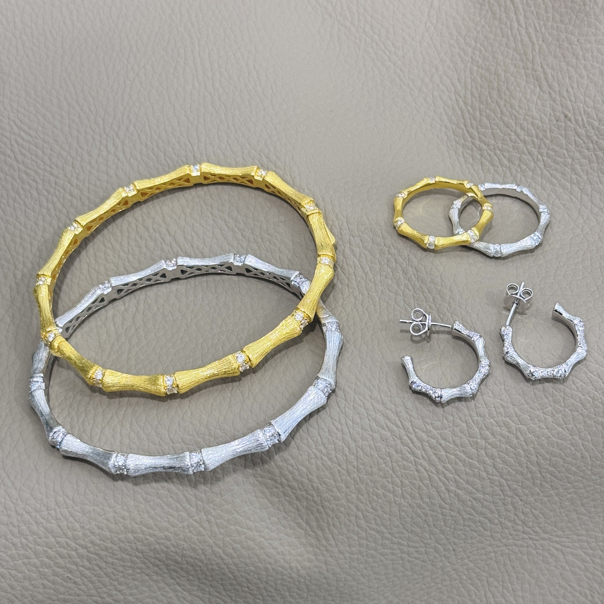 S925 Sterling Silver Handmade Brushed Bamboo Bracelet Ring suit Satin Niche Design Light Luxury High-end Sense
