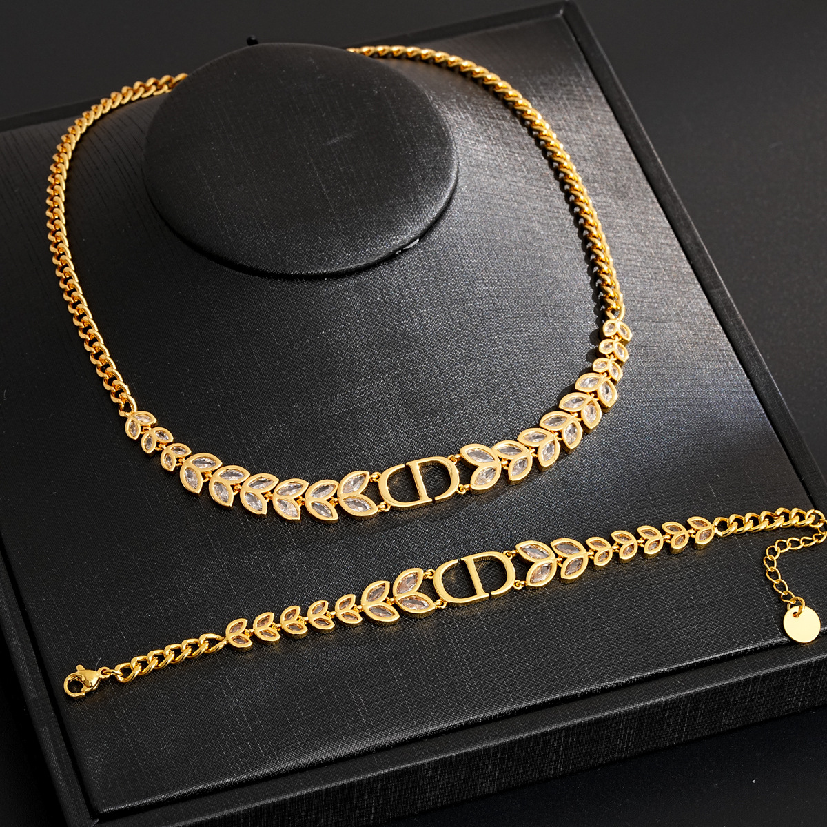 18K Real Gold Electroplated Zircon Letter Necklace Bracelet Set Accessible Luxury High-End Clavicle Chain European and American Fashion Jewelry