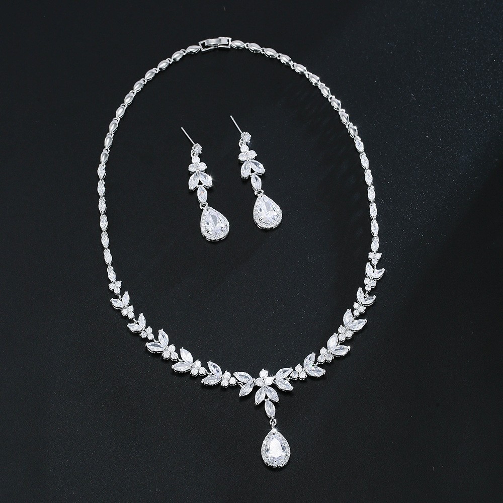 Emmaya Korean style elegant elegant bridal jewelry high-grade AAA zircon necklace earrings bracelet three-piece set