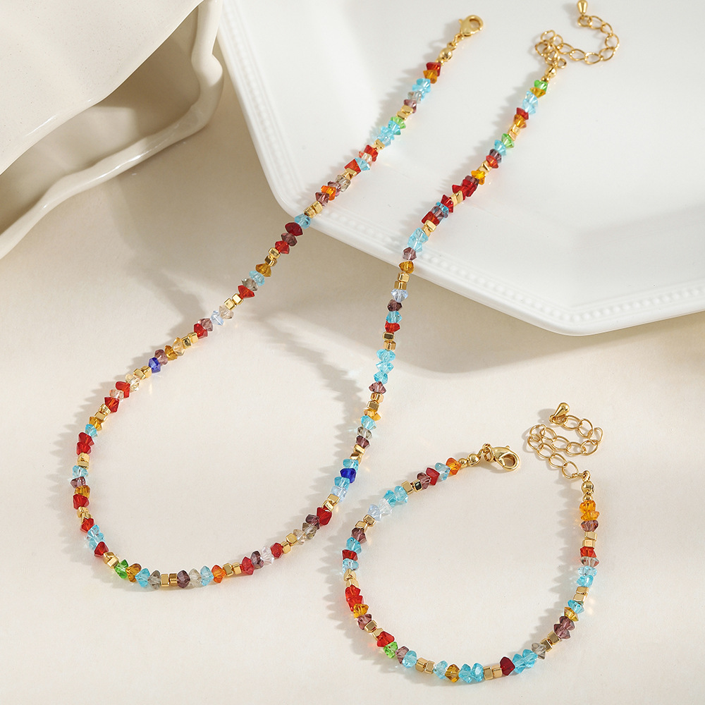 Summer Colorful Irregular Crystal Necklace Bracelet Set Niche Design Bohemian Versatile Clavicle Chain New Style