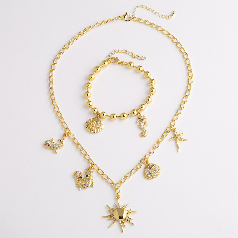 Jewelry Cross-Border Export Summer Beach Ocean Style Crab Shell Pendant Gold-Plated Necklace Bracelet Set Nkw32