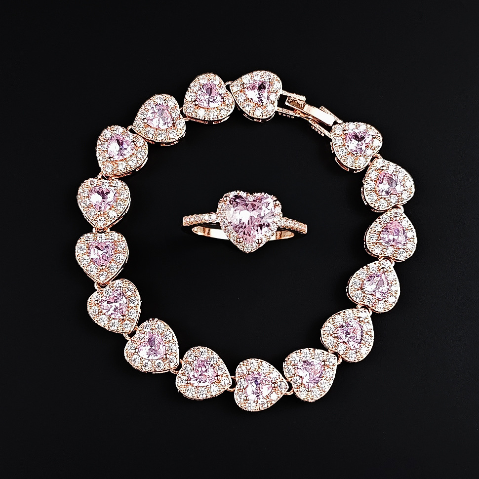 Amazon Cross-border Rose Gold Love Bracelet Ring Two-piece suit Niche Design r1707-s5777