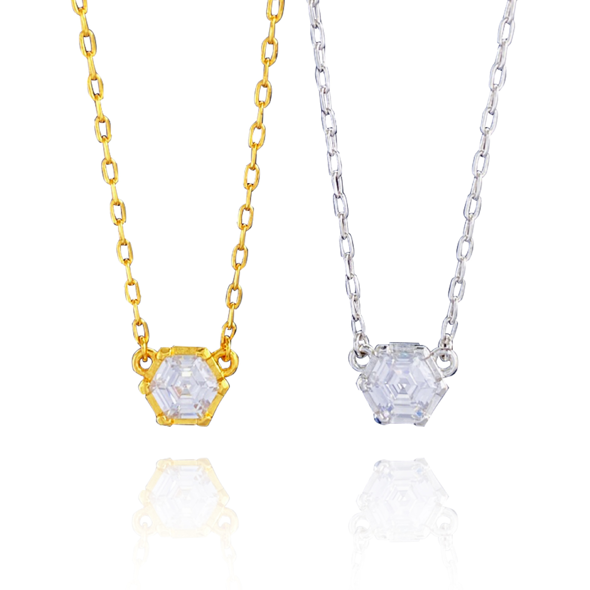 Hexagonal Honeycomb Claw Carat Zircon Set Earrings Bracelet Necklace Brass Electroplated 18K Real Gold White Golden Set