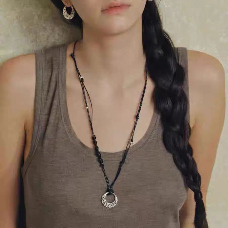 Mesh Crescent Bag Necklace and Earrings Set for Women, Detachable and Stackable, High-End Niche Versatile Accessory