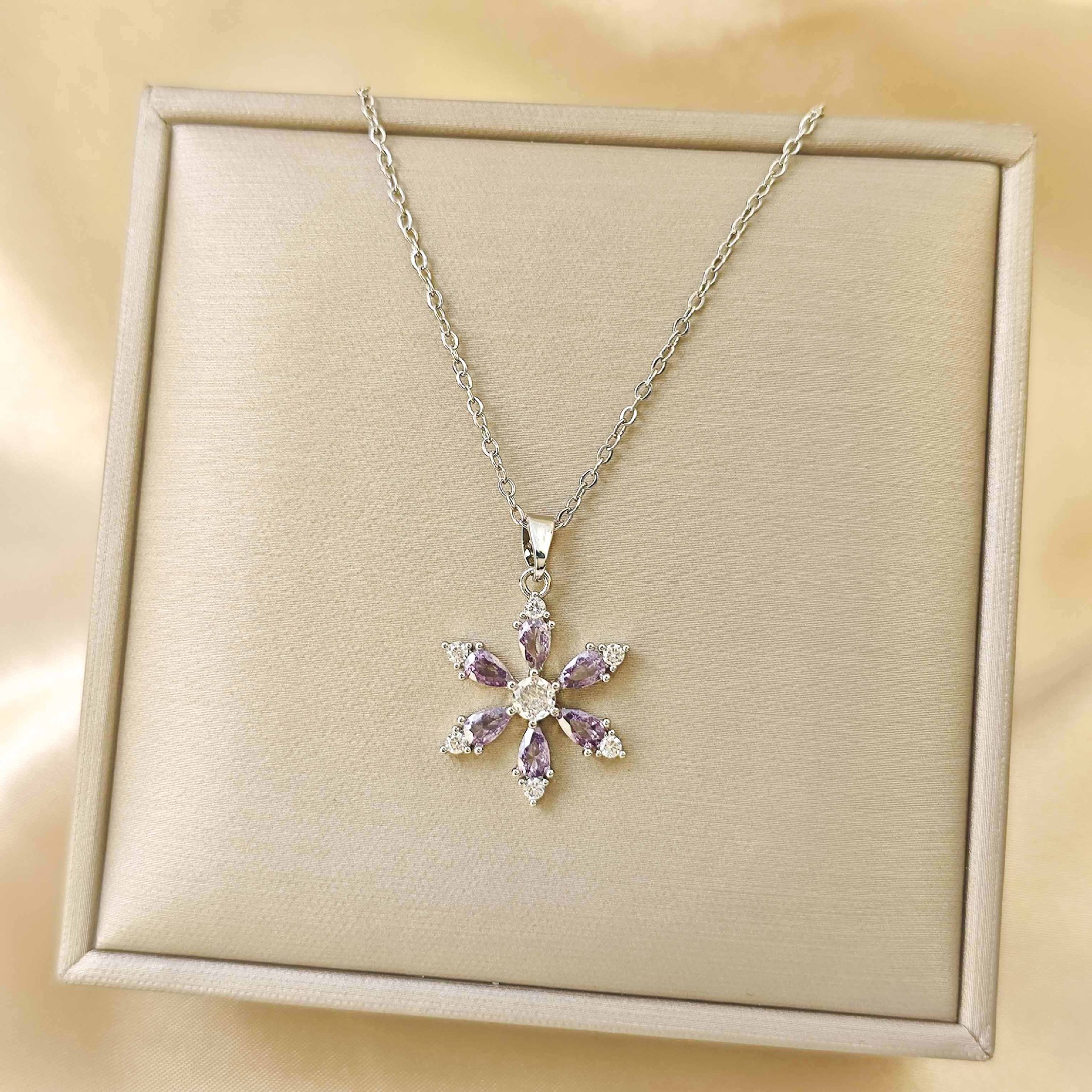 New Copper-Plated 18K Gold Snowflake Pendant Christmas Necklace with Zircon Clavicle Chain European and American Style Hot-Selling Jewelry Set
