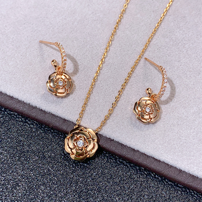 Small Fragrant Camellia Necklace Women's Rose Earrings Light Luxury High-End Clavicle Chain Set Factory Direct Sale