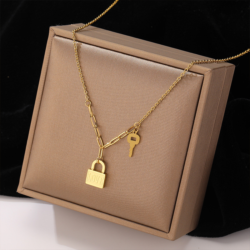 Key design light luxury necklace women's titanium steel clavicle chain bracelet two-piece ins cold style 2021 New