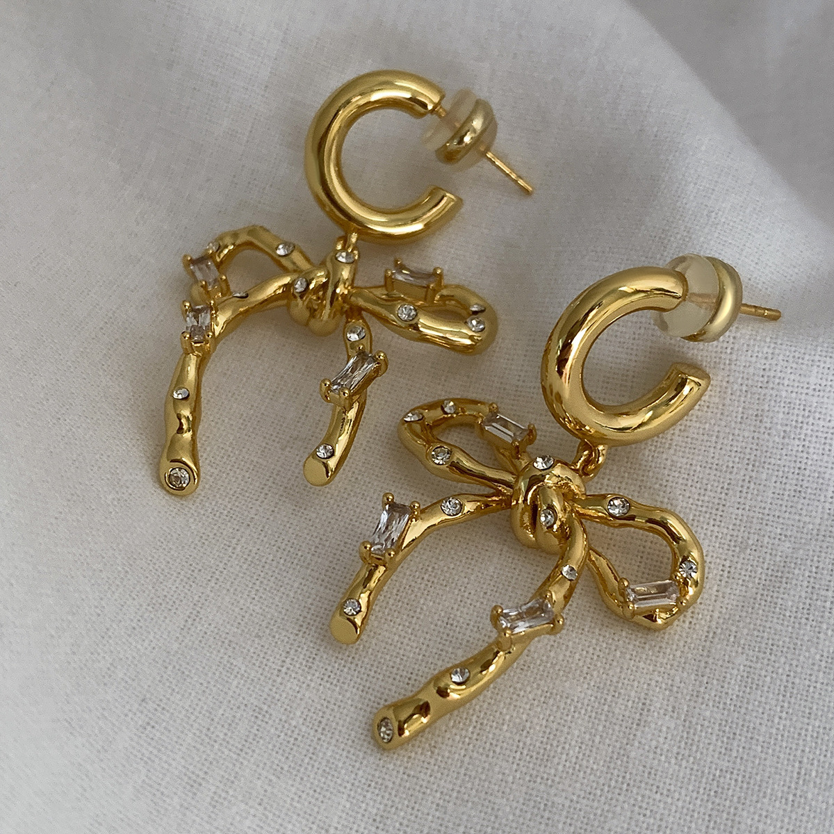 Fashionable French Fashionable Distinctive Earrings Super Fairy Bree Knot Three-dimensional Radian Diamond Bow Clavicle Chain Simple Set