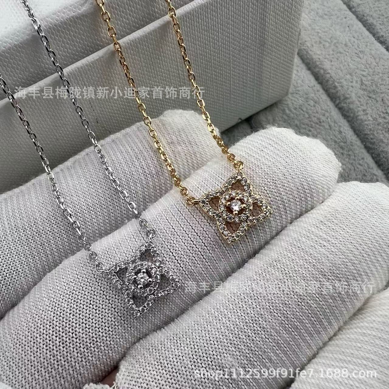 Lotus Hollow Necklace Dell's High Version Full Diamond Flower Earring Set Niche Exquisite Cross-Border Jewelry Wholesale