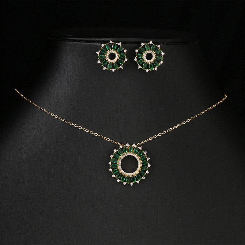 Flash Diamond Roman Jewelry Una Series Necklace Set Crystal Inlaid Round Cut Dazzling Charm Earrings Bracelet