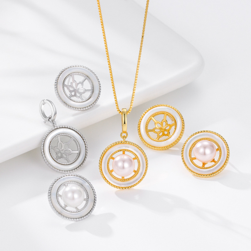 S925 Sterling Silver Geometric Round Mother-Of-Pearl Sticky Pearl Empty Support Universal Buckle Pendant Earrings Accessories DIY Two-Piece Set