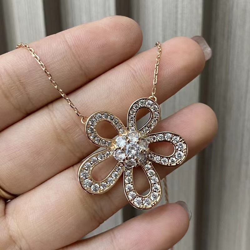 Full diamond Five-Flower zircon sunflower necklace earrings ring suit women's light luxury niche flower pendant high-grade petals