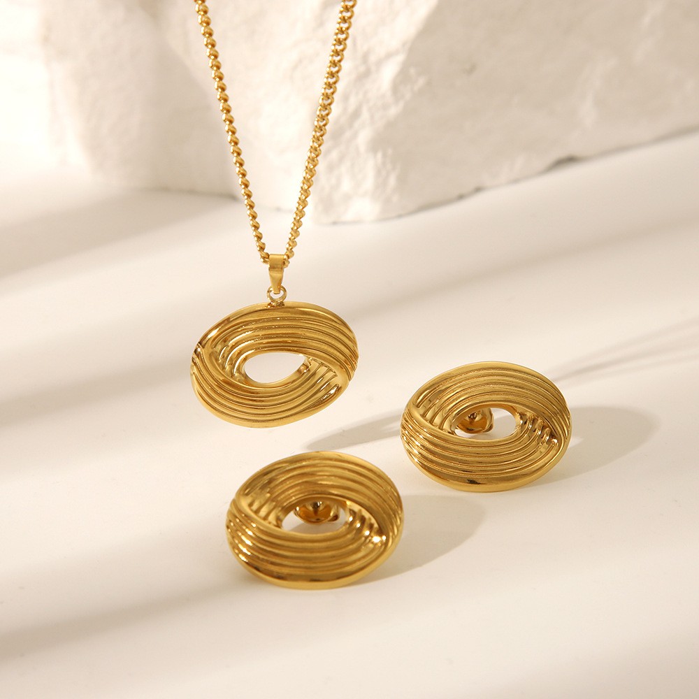 Hot-Selling Void Eye Necklace and Earring Set with Mobius Pattern, High-End Stainless Steel Jewelry