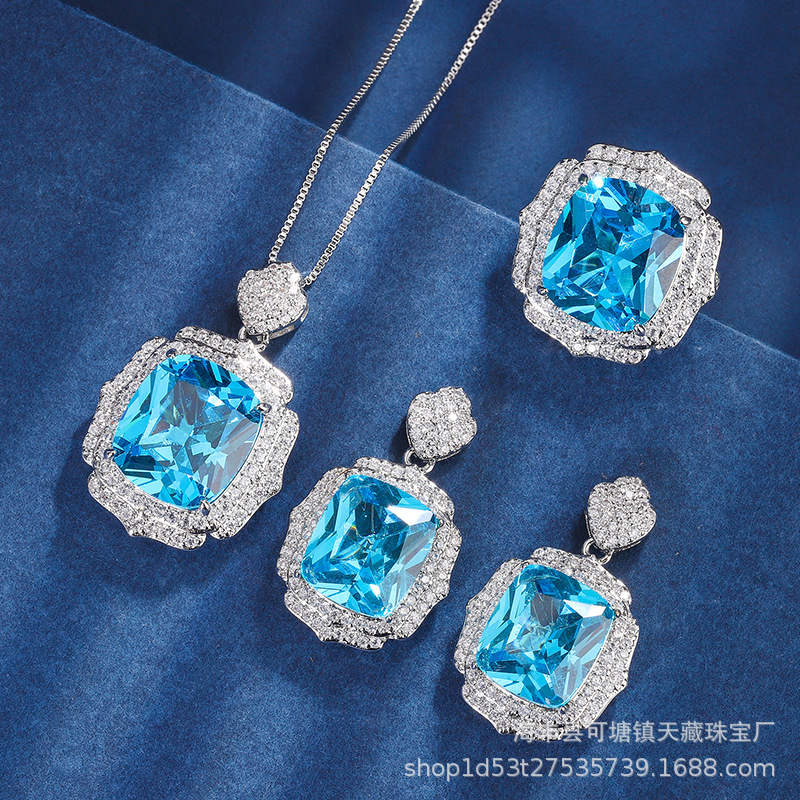 Live Supply Copper-Plated Real Gold Imitation Pink Diamond Light Luxury Heavy Craftsmanship Pendant Square Gemstone Inlaid Ring Necklace Set