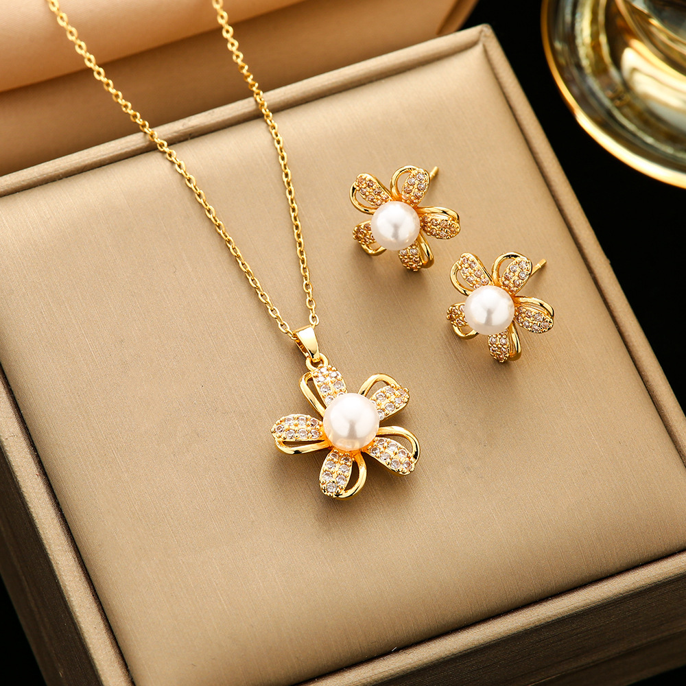 European and American Spot Mixed Batch Direct Delivery 18K Real Gold Electroplated Titanium Steel Super Shiny Star Versatile Light Luxury Earrings Necklace Set