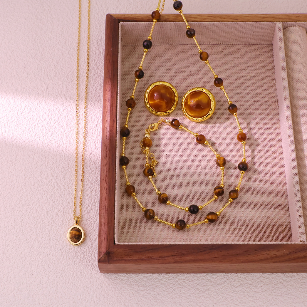 Tiger's eye stone design beaded niche accessories real gold plating high sense suit Tiger's eye necklace