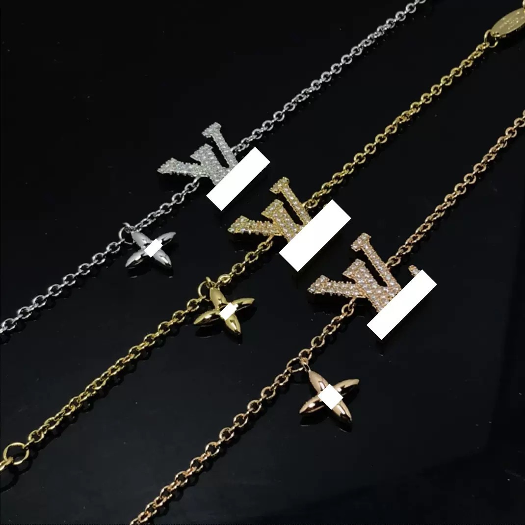 High-End Lu Family Full Diamond V Letter Necklace Bracelet Earrings Enamel Set European and American Simple Multi-Flower Collarbone Chain Wholesale