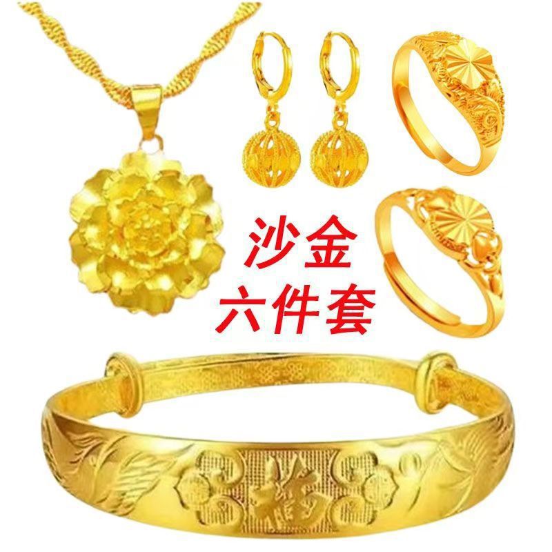 Vietnamese Sand Gold Sunflower Necklace Six-Piece Jewelry Set Gold Color Gift for Girlfriend Wedding Three Gold Hardware Wedding