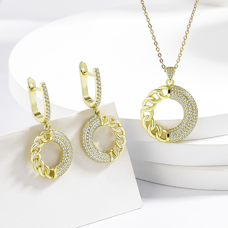 Copper Earrings, Bracelets, Necklaces Set, European and American Jewelry, Wedding Dinner Party Zircon Set Chain