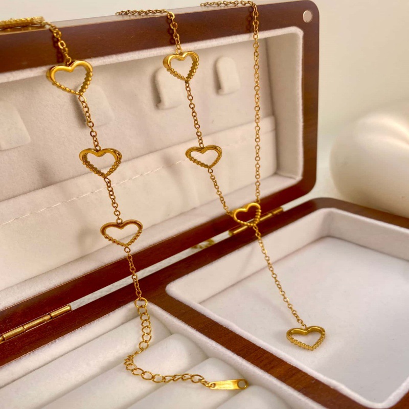 Cross-Border Hot-Selling Love Stainless Steel Bracelet for Women, Light Luxury Fashion 18K Real Gold Plated Non-Fading Necklace Set Wholesale