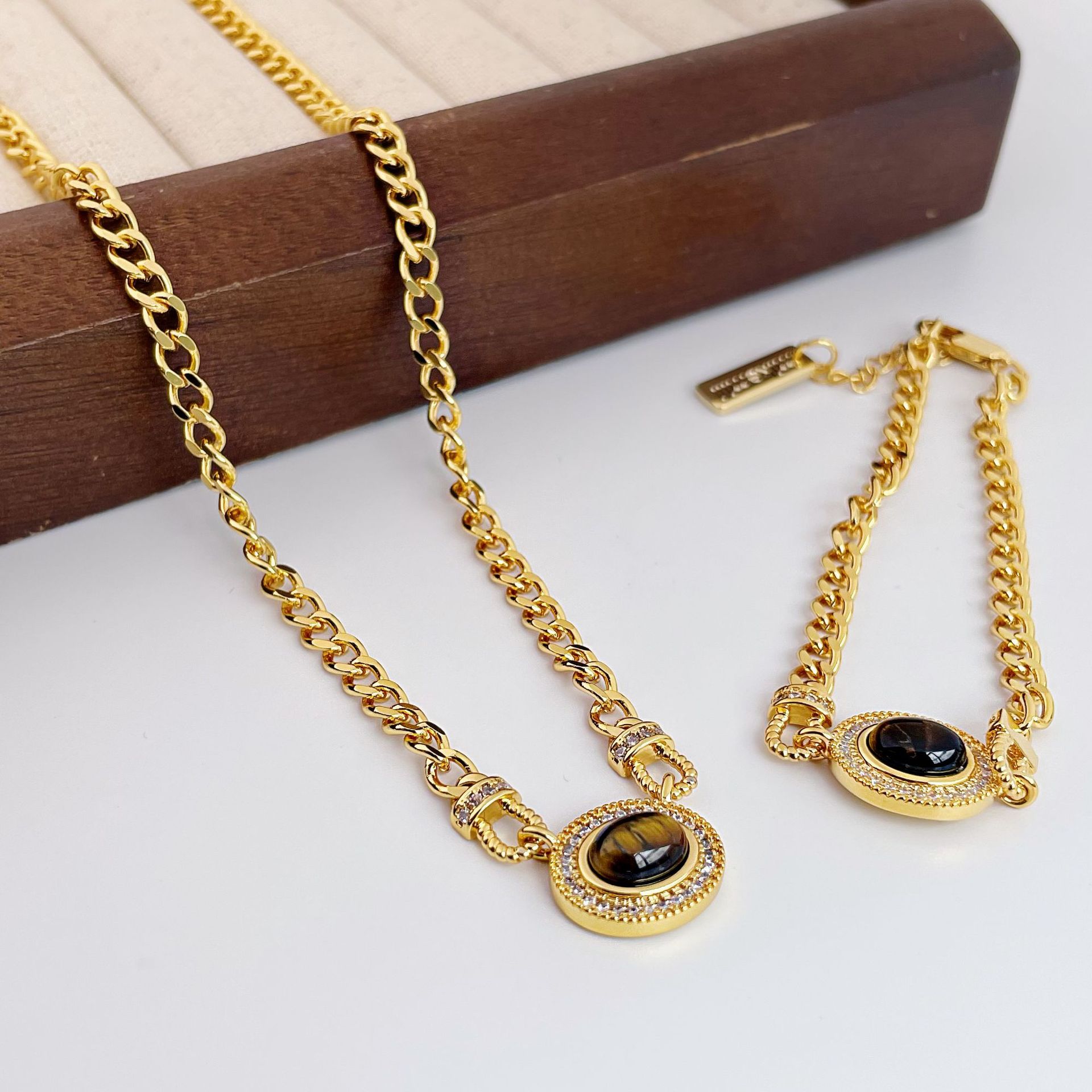 French Court Style All-match Bracelet Necklace Women's High-end Sense Copper Plated Real Gold Plus Color Light Luxury Explosive Jewelry suit