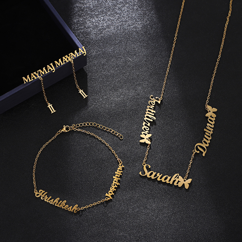 Personalized DIY Letter Necklace Bracelet Earrings Three-Piece Set Ins Couple Stainless Steel Letter Jewelry Fashion Necklace for Women