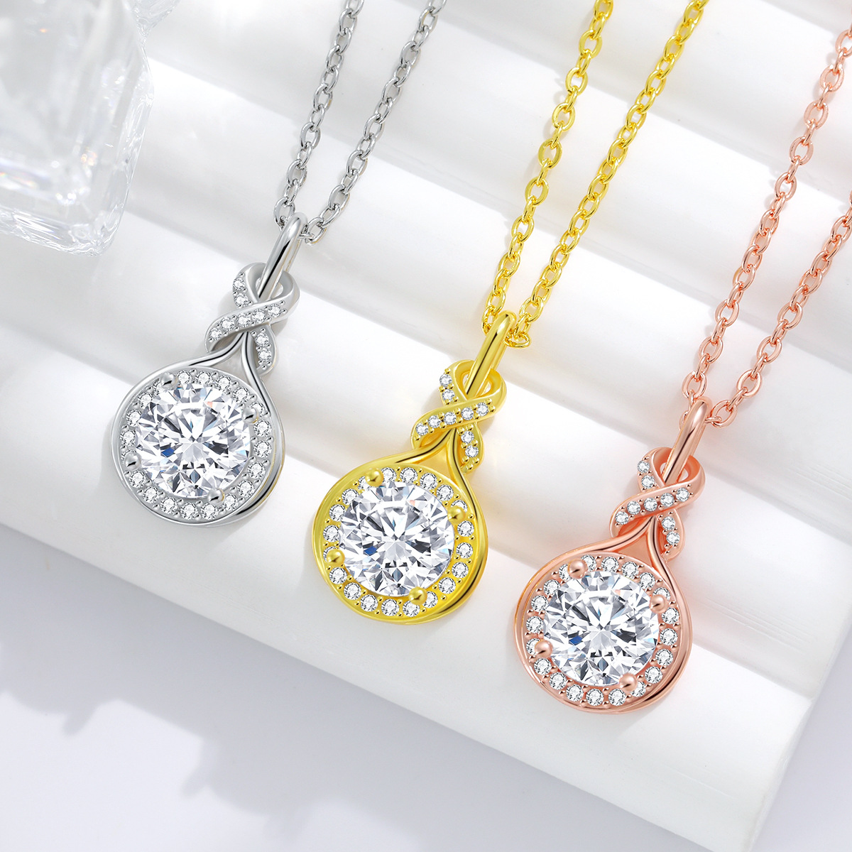 European and American Original Design Accessible Luxury Water Drop Set for Women with Diamonds Simple Round Symmetrical 8 Infinite Intertwined Symbol Necklace