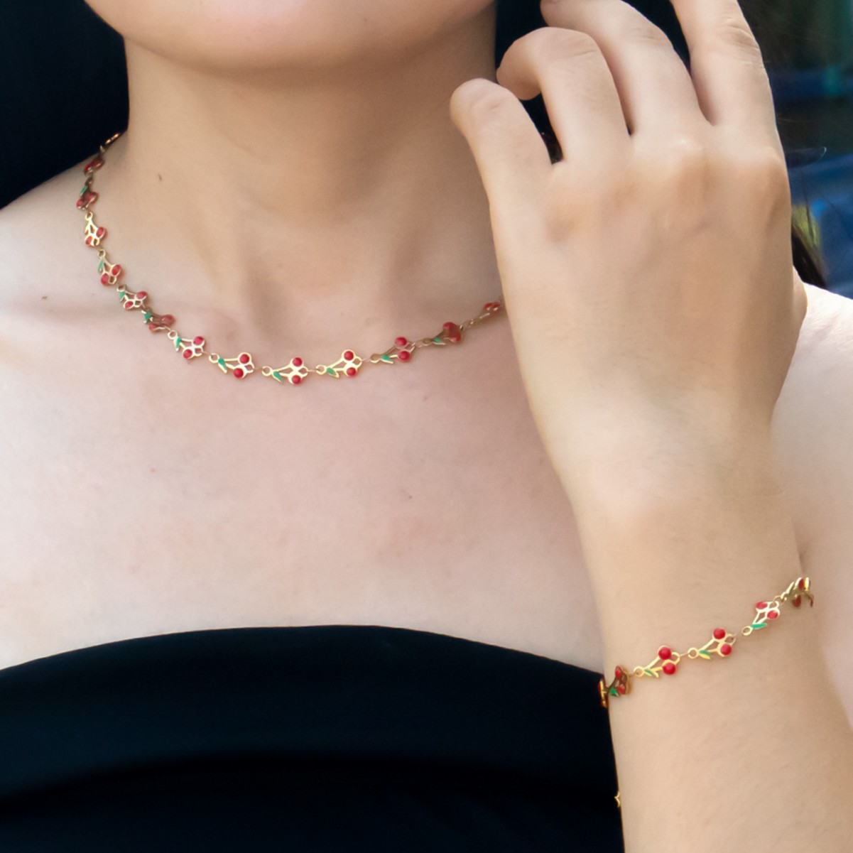 Stainless Steel Oil Dripping Handmade Chain Fashion Fruit Necklace Cherry Necklace Ladies Small Fresh Jewelry Set