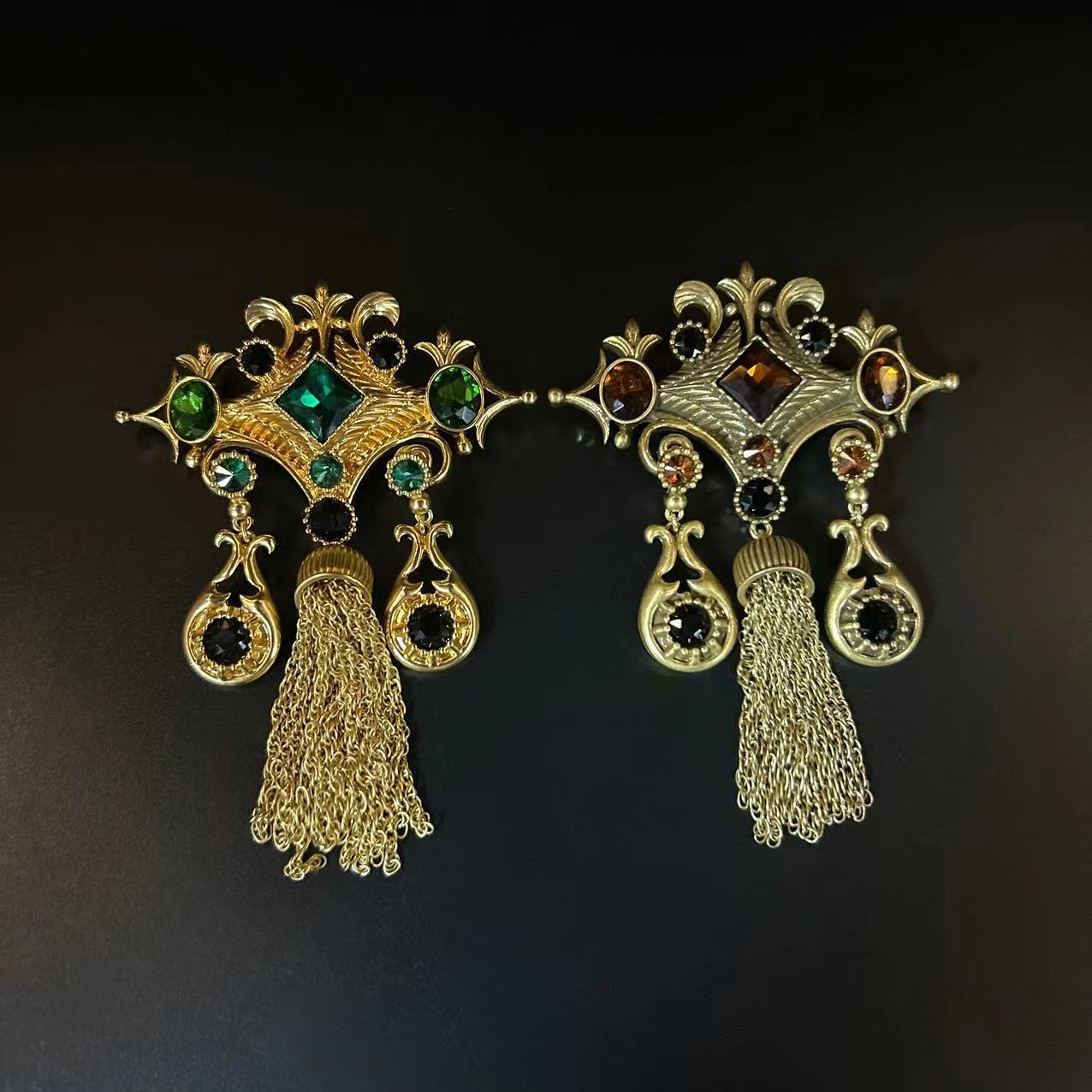 European and American Retro Palace-Style Gemstone Tassel Brooch Earrings Fashion Temperament Water Drop Detachable Set