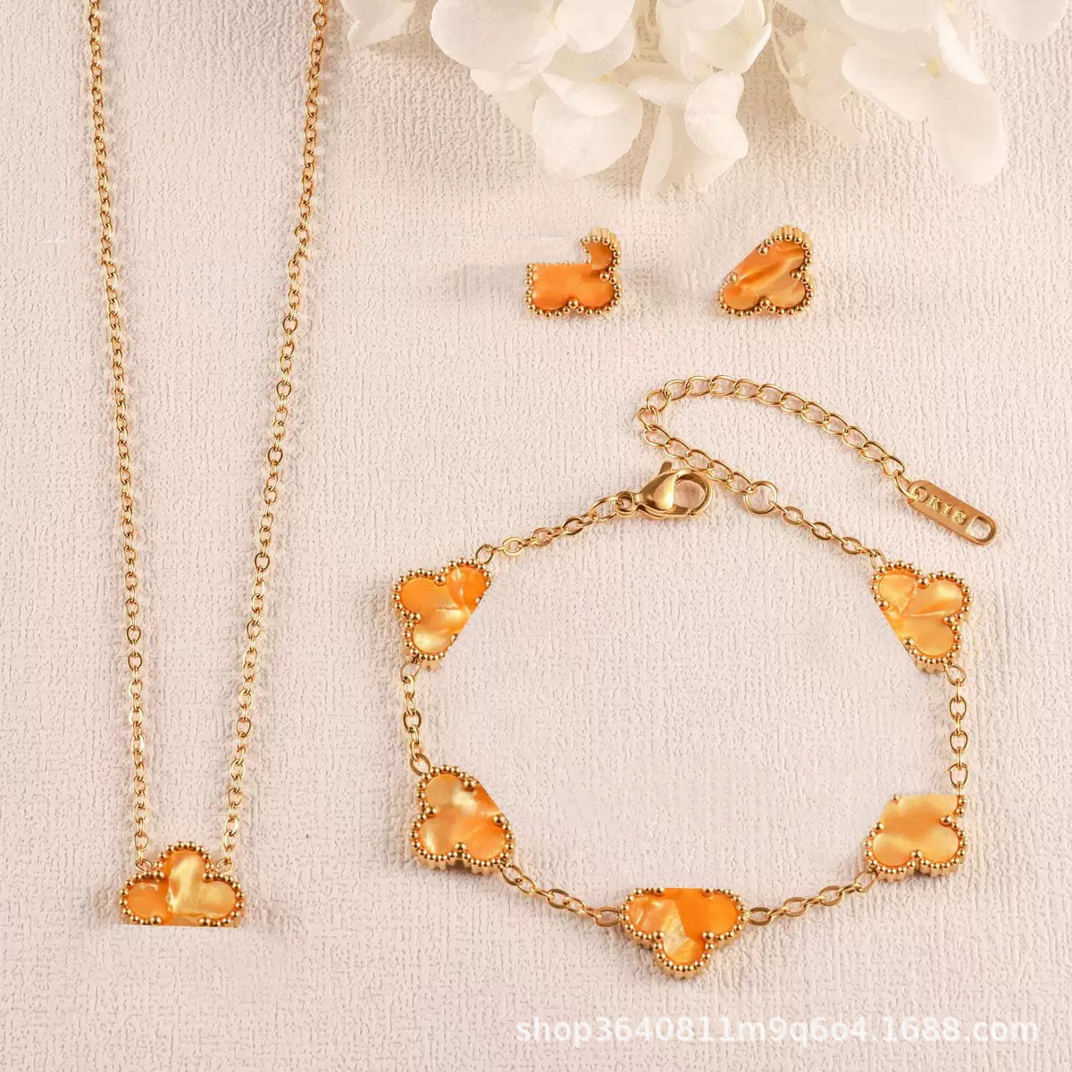 Cross-Border Hot-Selling Four-Leaf Clover Colorful Series Women's Three-Piece Bracelet Necklace Earrings Electroplated 18K Non-Fading