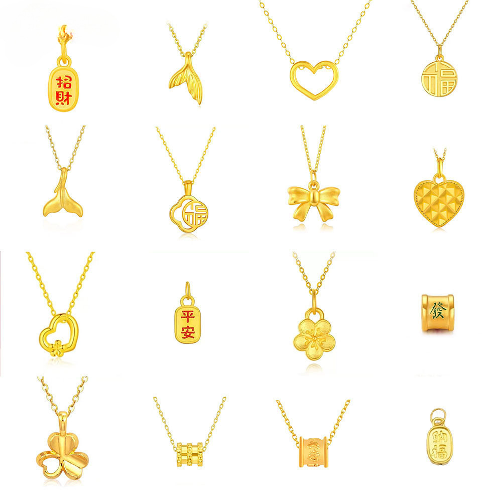 Water Shell Zhou Shangfu Gold 999 Pure Gold Pendant 3D Hard Gold Clavicle Chain Beauty Gift Set for Girlfriend