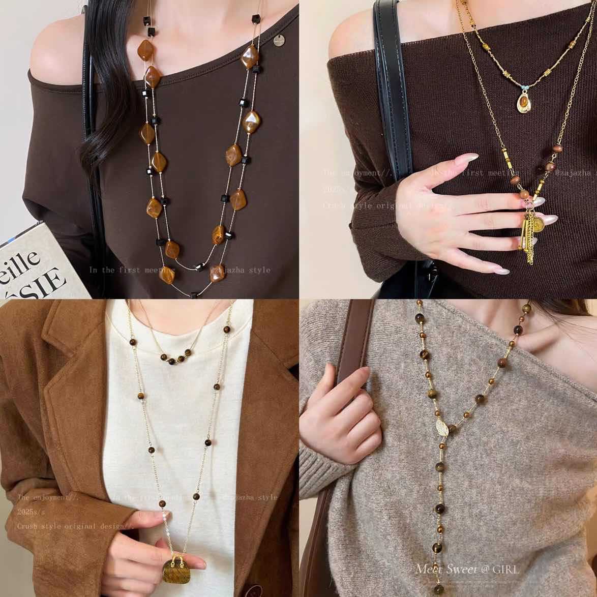 Autumn and Winter Retro Glass Resin Flower Beaded Necklace Light Luxury High-End Sweater Chain Elegant Versatile Niche Necklace