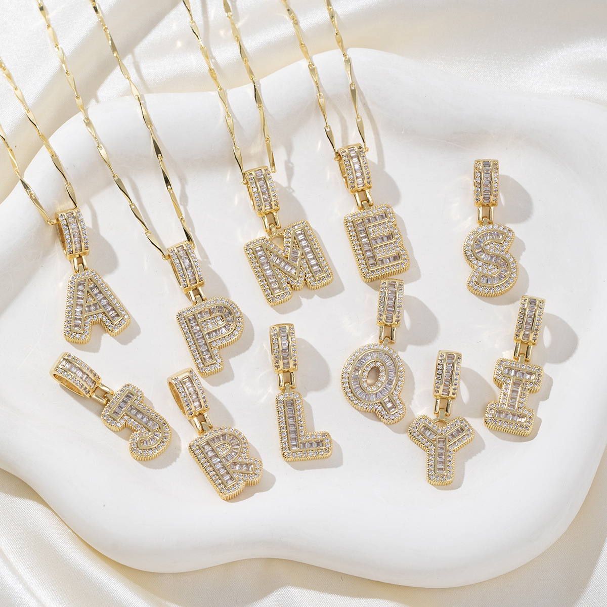 Cross-Border European and American Full Diamond Rock Candy Flower 26 Letter Pendant Necklace Women's Accessible Luxury Copper Inlaid Zirconium Plated Real Gold Round Set