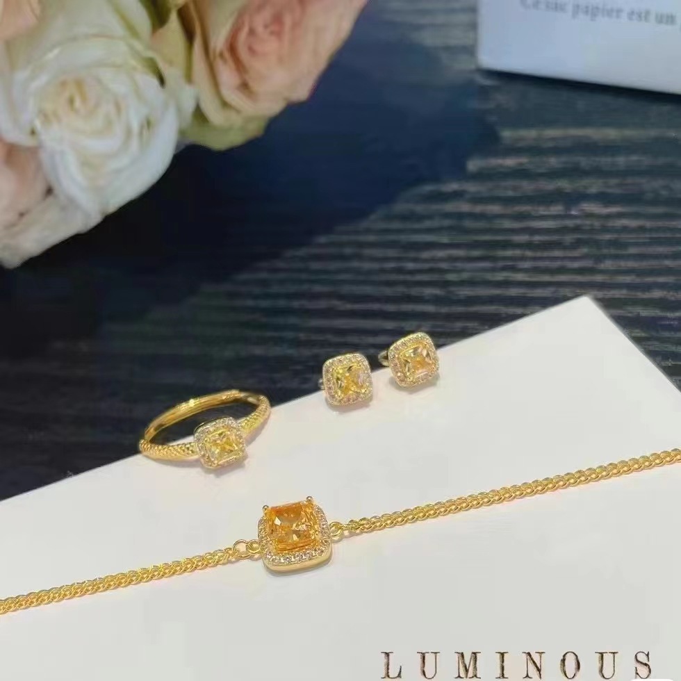 Foreign trade new yellow diamond caibao suit sugar gold color full diamond bracelet net red high sense earrings in stock direct sales