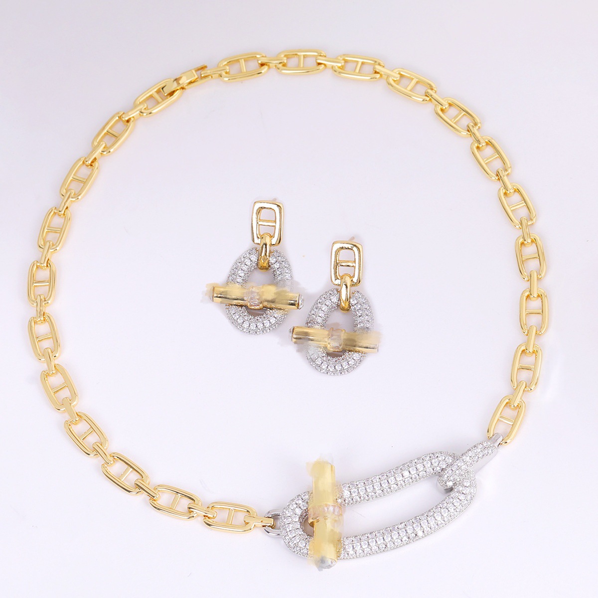 European and American Cross-Border Pig Nose Necklace Earrings Set Full of Diamonds U-Shaped Horseshoe Ot Buckle Chain Necklace Punk Clavicle Chain