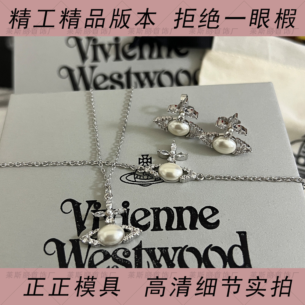 New Empress High Version Oval Pearl Necklace Bracelet Earrings 925 Silver Needle Real Gold Plating Vivian
