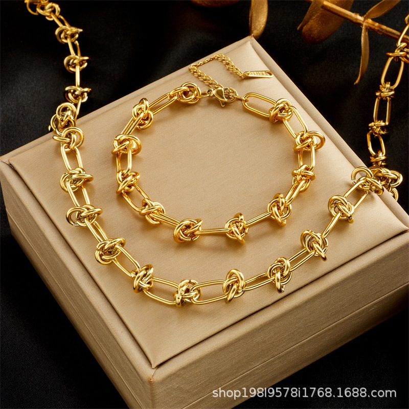Cross-Border Wholesale European and American Street Style Knotted Simple Bare Chain Bracelet Titanium Steel Exaggerated Punk Thorn Chain Clavicle Chain