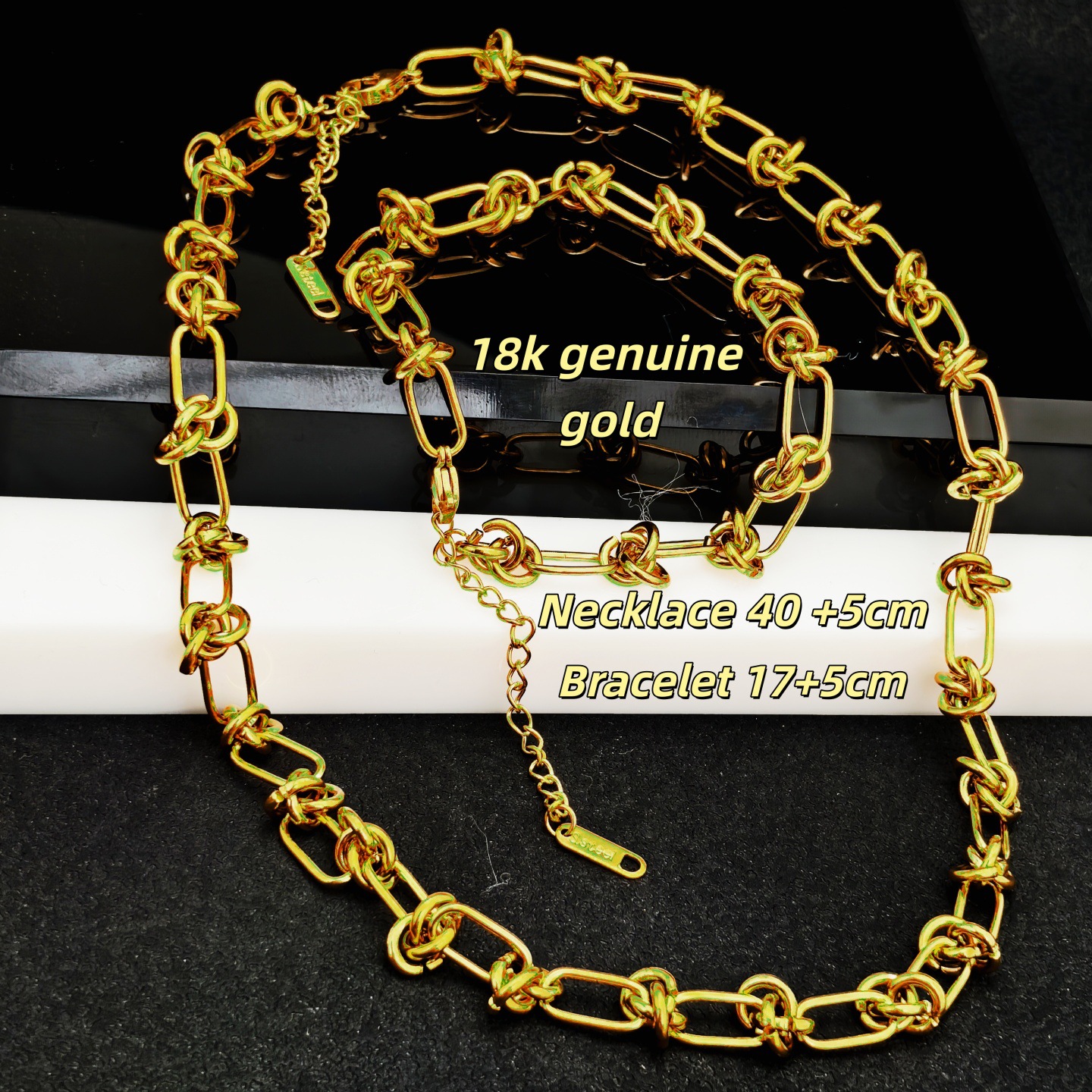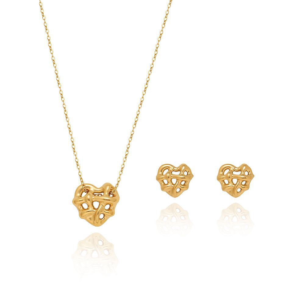 XL488 New woven love necklace clavicle chain ear studs set titanium steel mesh red 18K vacuum electroplating