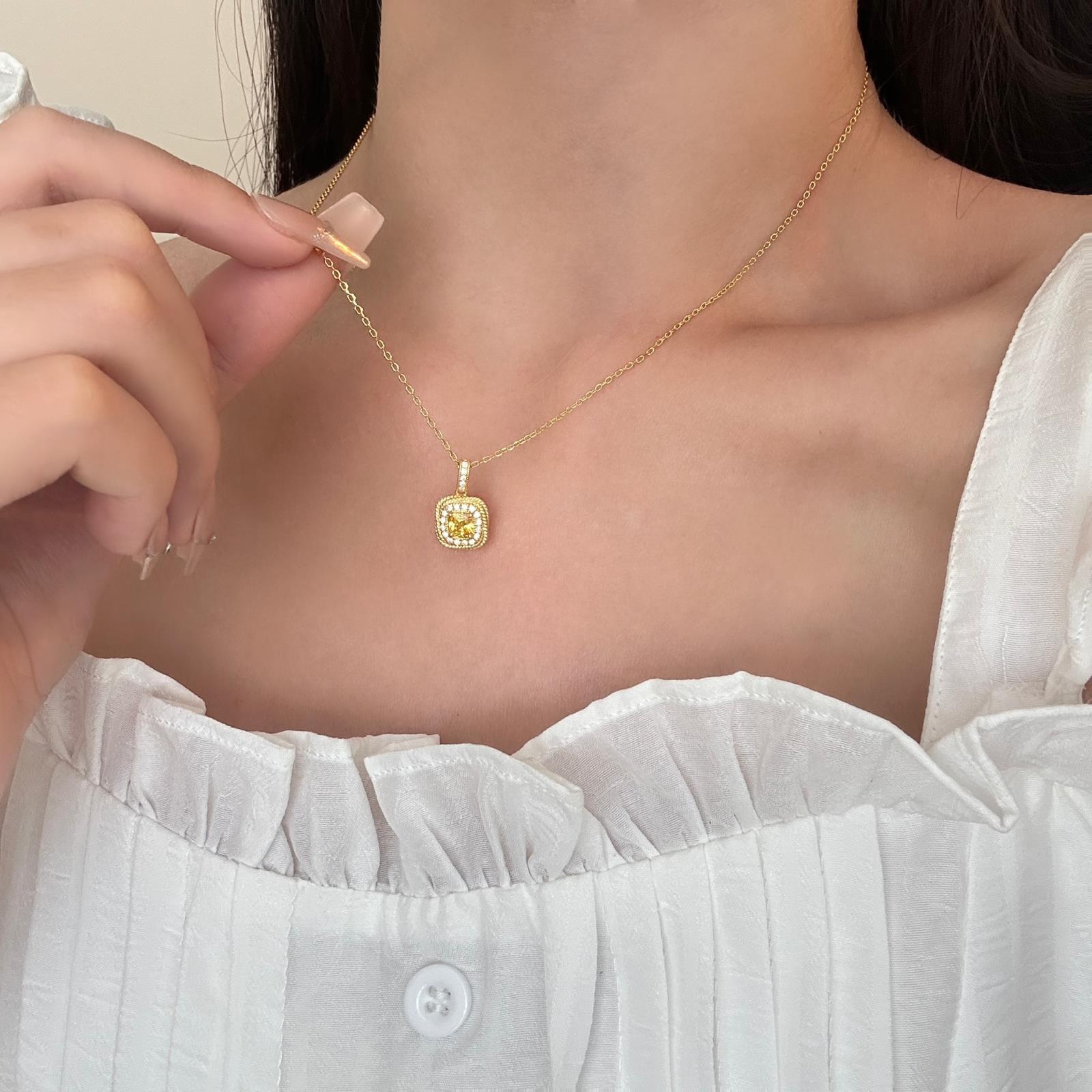 S925 Sterling Silver Xiaohongshu Recommended Small Sugar Cube Citrine Ring, Sugar Cube Necklace for Women, Three-Piece Set for Girlfriend