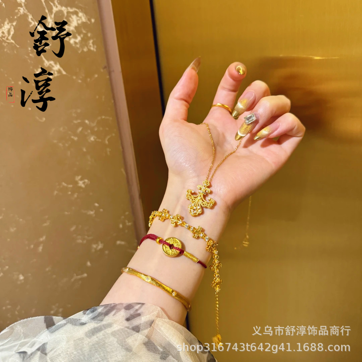 Authentic three gold jewelry a set of wedding dragon and phoenix bracelet gold hardware suit fake three gold simulation sand gold engagement marriage
