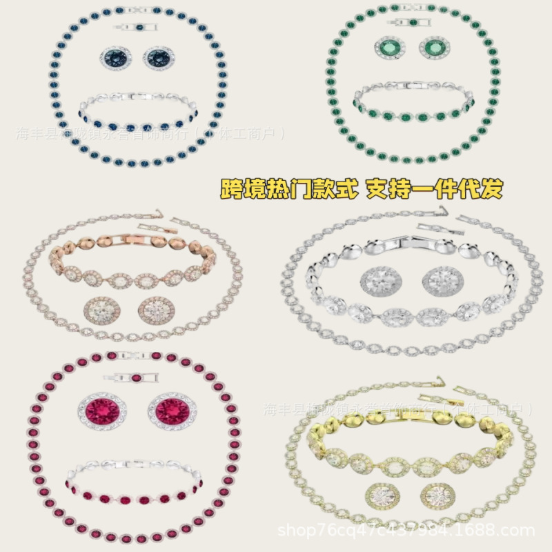 Cross-Border Aliexpress Shijia Crystal Necklace Women's Light Luxury Fashion Casual Roman Full Diamond Necklace Bracelet Earring Set