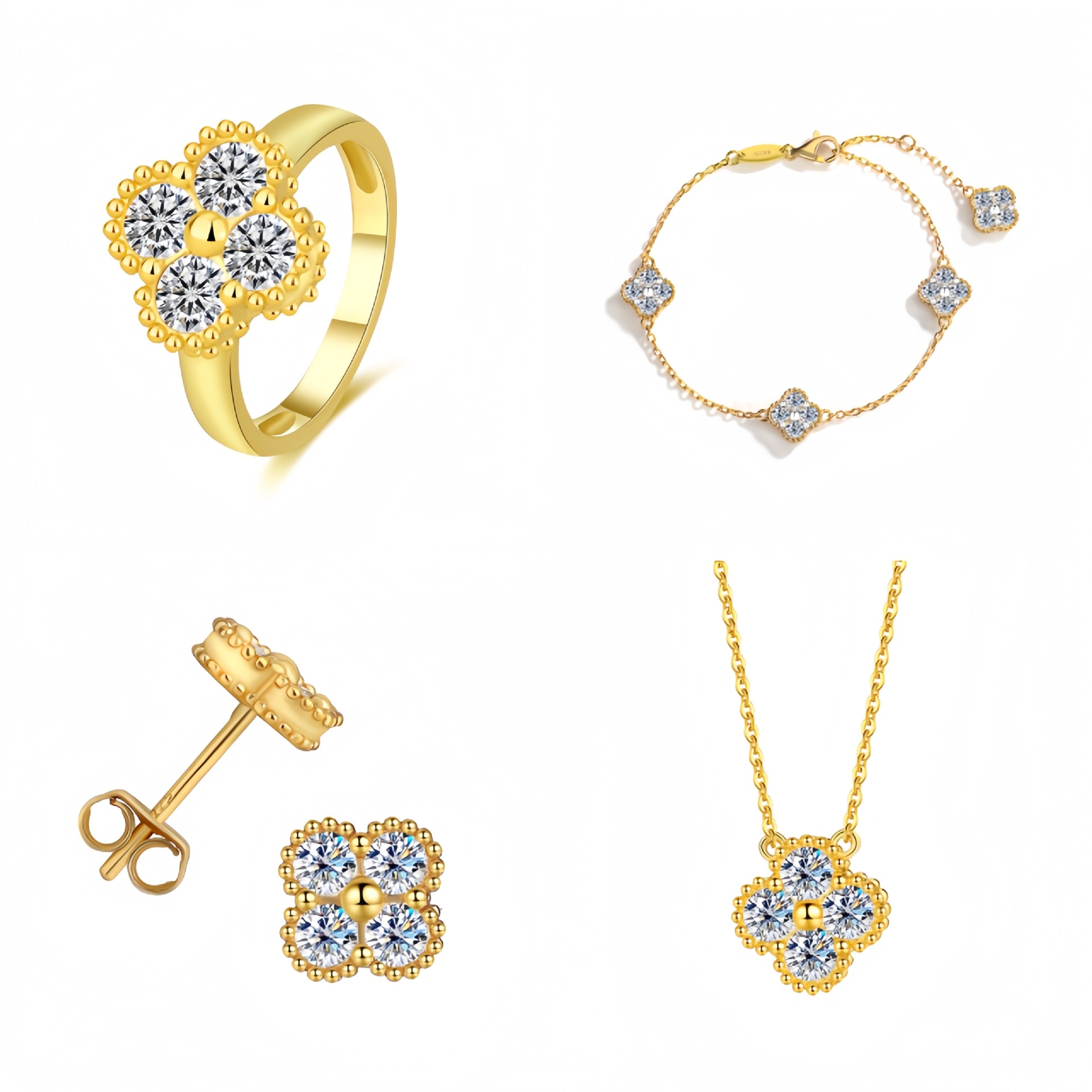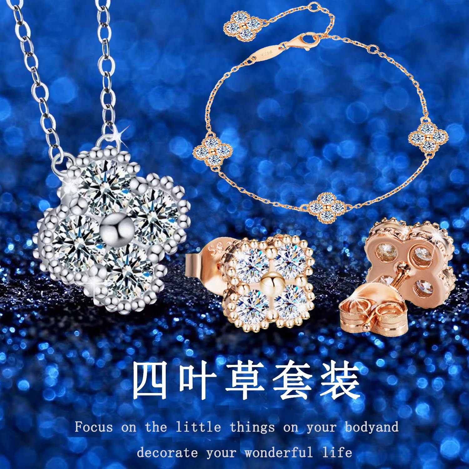 S925 sterling silver four-leaf clover moissanite jewelry suit necklace bracelet earrings cross-border supply chattering live wholesale