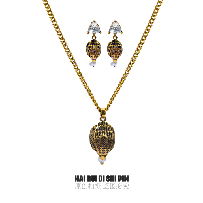 Middle Ancient Plain Gold Retro Early Elegant Earrings 18K Real Gold Electroplated Smart Flower Single Pendant Necklace Earrings suit