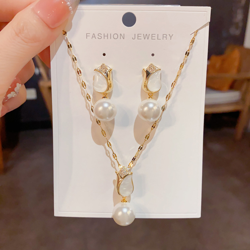 Light luxury fashion high sense tulip pearl suit earrings necklace temperament simple sweet Joker jewelry wholesale