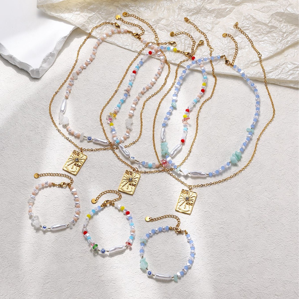 European and American Cross-border Necklace 18K Real Gold Stainless Steel Single-layer Star Pendant Color Irregular Natural Stone Necklace