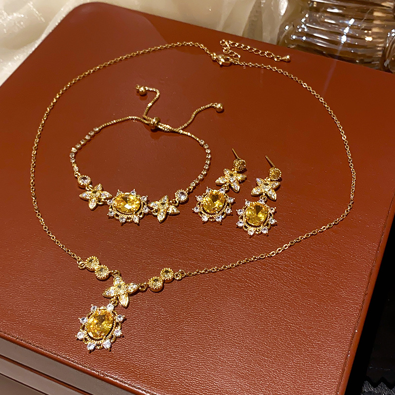 Korean Style Zircon Necklace Set Niche Design Earrings Simple Elegant Bridal Necklace Set