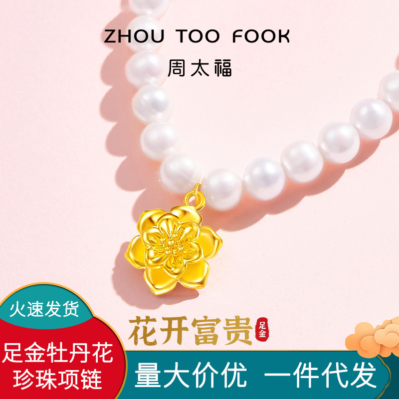 Pure Gold 999 Peony Flower Freshwater Pearl Necklace Pendant Pure Gold Flower Blooming Wealth Pendant Goddess Day Gift