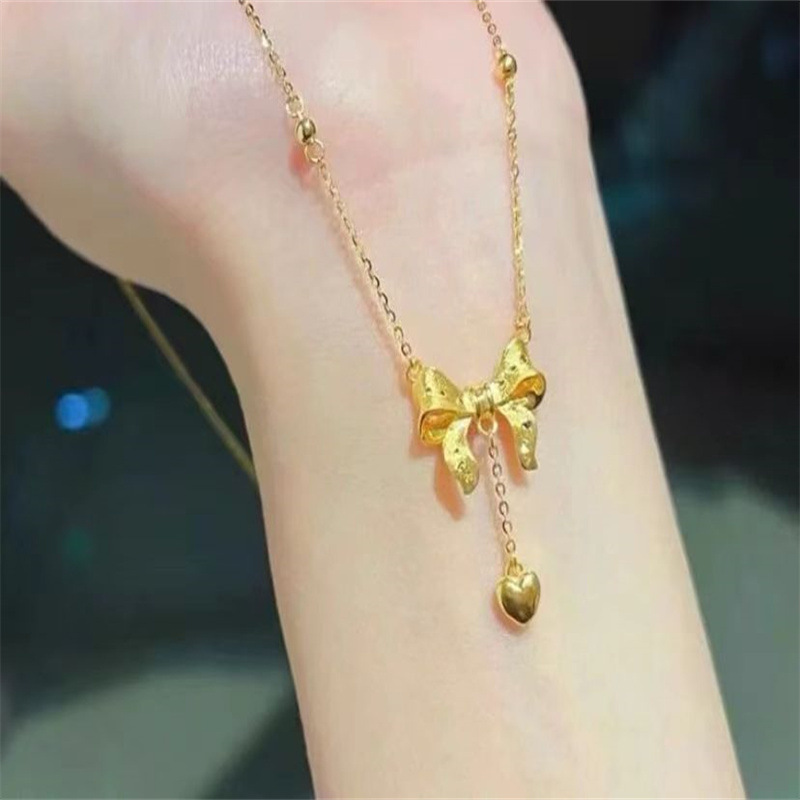 Vietnamese Sand Gold Jewelry Women's Light Luxury Niche Bow Clavicle Chain Imitation Gold Cross-Border Jewelry